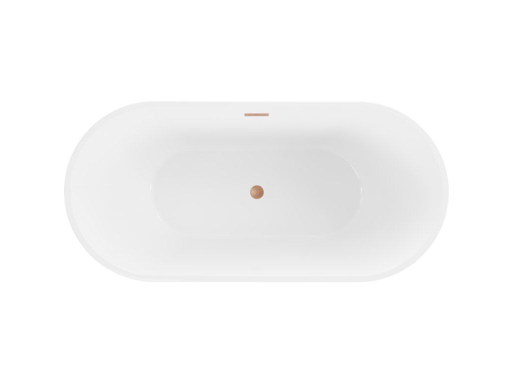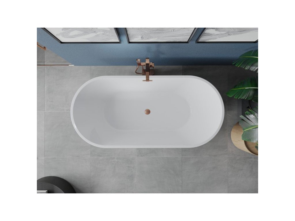 Mexen Luna je elegantná voľne stojaca vaňa s rozmermi 170 x 80 cm, ktorá sa dokonale hodí do moderných kúpeľní. Je vyrobená zo sanitárneho akrylátu, má krásny biely a čierny povrch a zamatové detaily z brúsenej medi. Prepad a stredový odtokový žliabok zvyšujú pohodlie, zatiaľ čo odolnosť voči dechtovaniu a UV žiareniu zaručuje trvanlivosť a estetický vzhľad na dlhé roky. Jej oválny tvar a lesklý povrch dodajú vašej kúpeľni jedinečný štýl.Dodatočné parametre