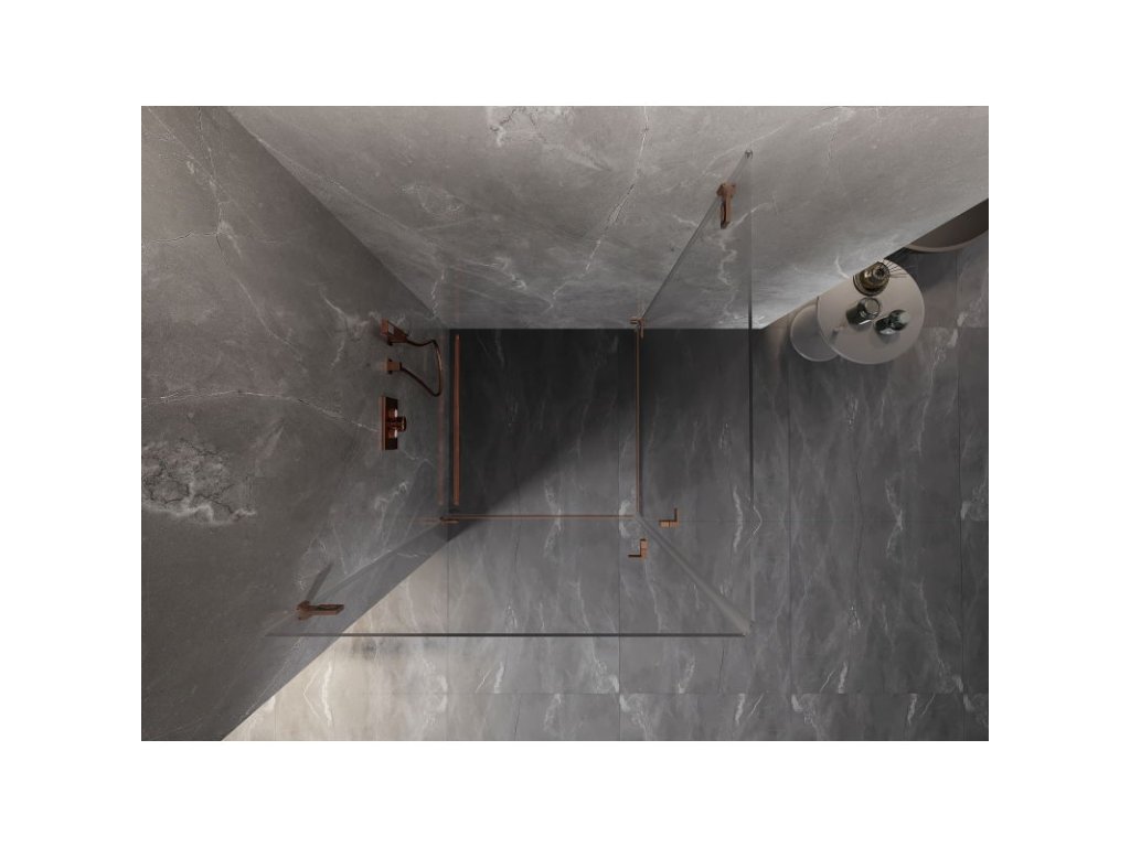 Mexen Lunar-B Duo výklopný sprchový kút 75 x 75 cm, transparentný, brúsená meď - 832-075L-075P-65-00