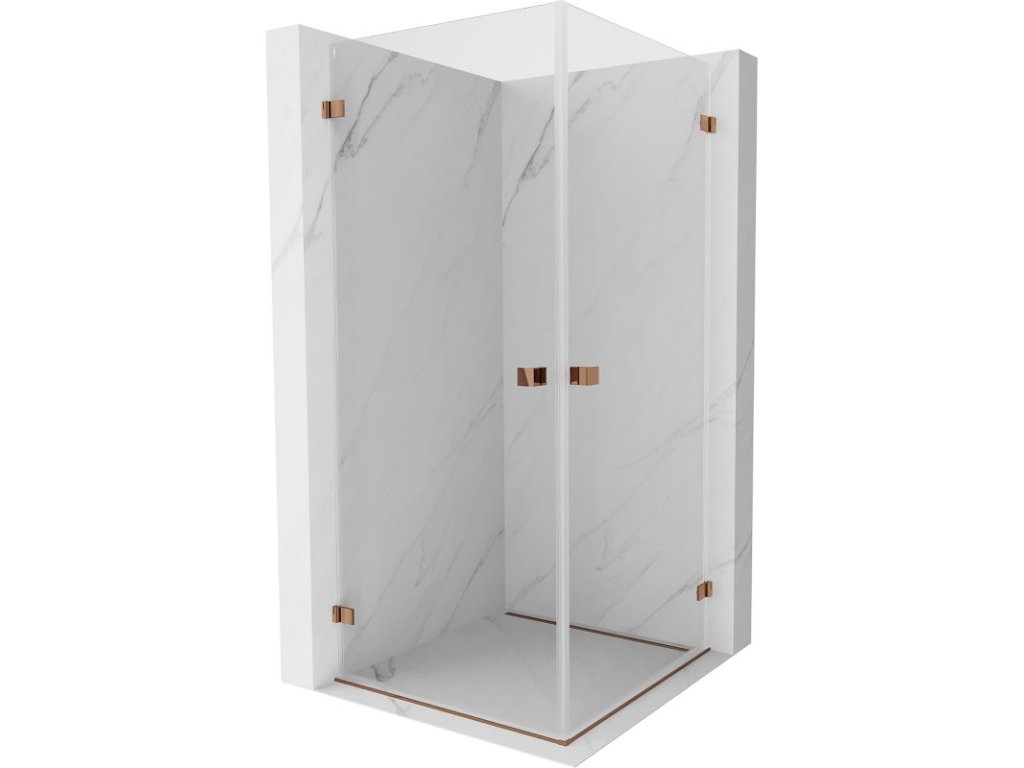 Mexen Lunar-B Duo výklopný sprchový kút 75 x 75 cm, transparentný, ružové zlato - 832-075L-075P-60-00