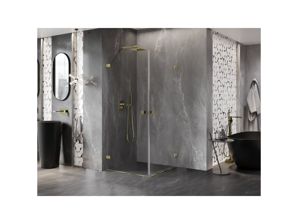 Mexen Lunar-B Duo výklopný sprchový kút 90 x 90 cm, transparentný, zlatý - 832-090L-090P-50-00