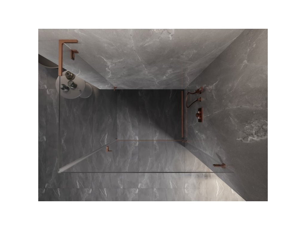 Mexen Lunar-B L pravostranný výklopný sprchový kút 95 x 70 cm, transparentný, brúsená meď - 832L-095-070-65-00-P