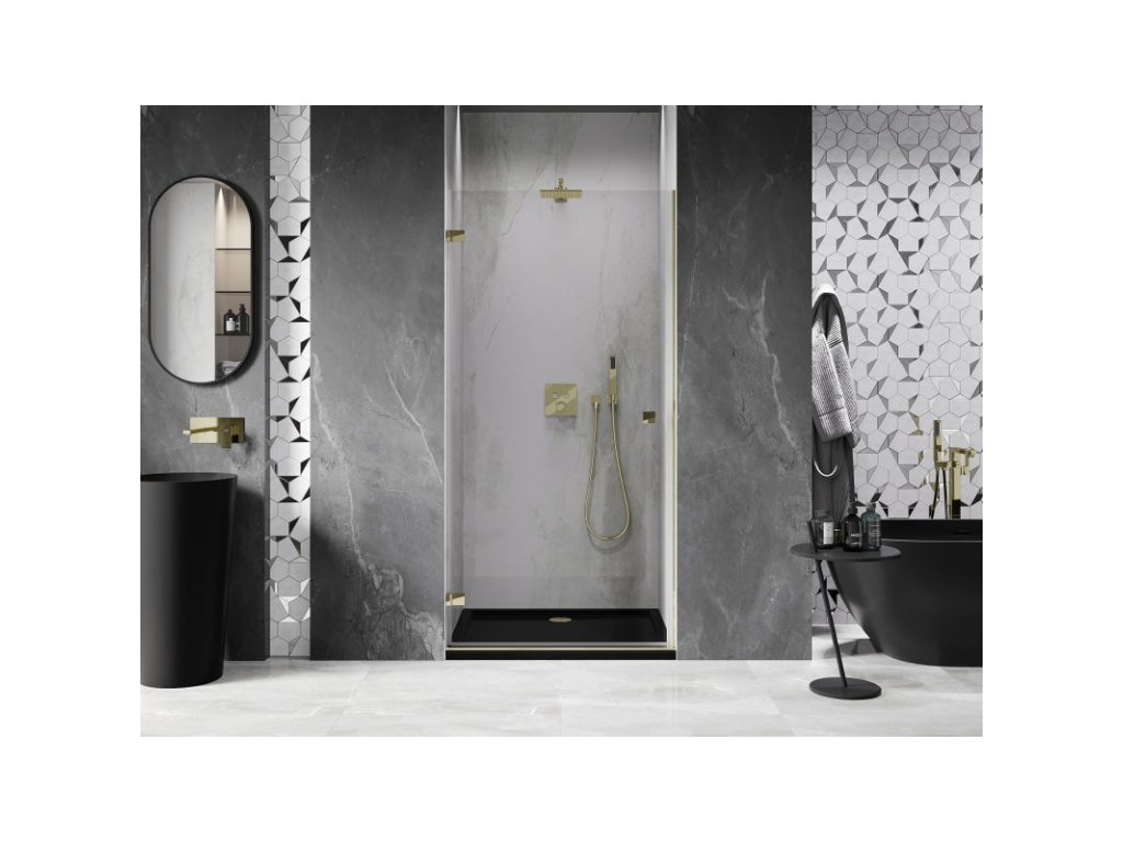 Mexen Lunar-B Otočné ľavé sprchové dvere 80 cm, transparentné, zlaté - 832-080-000-50-00-L