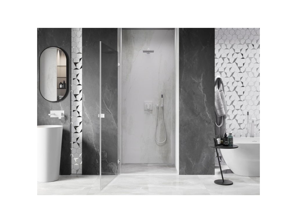 Mexen Lunar-B Otočné ľavé sprchové dvere 90 cm, transparentné, biele - 832-090-000-20-00-L