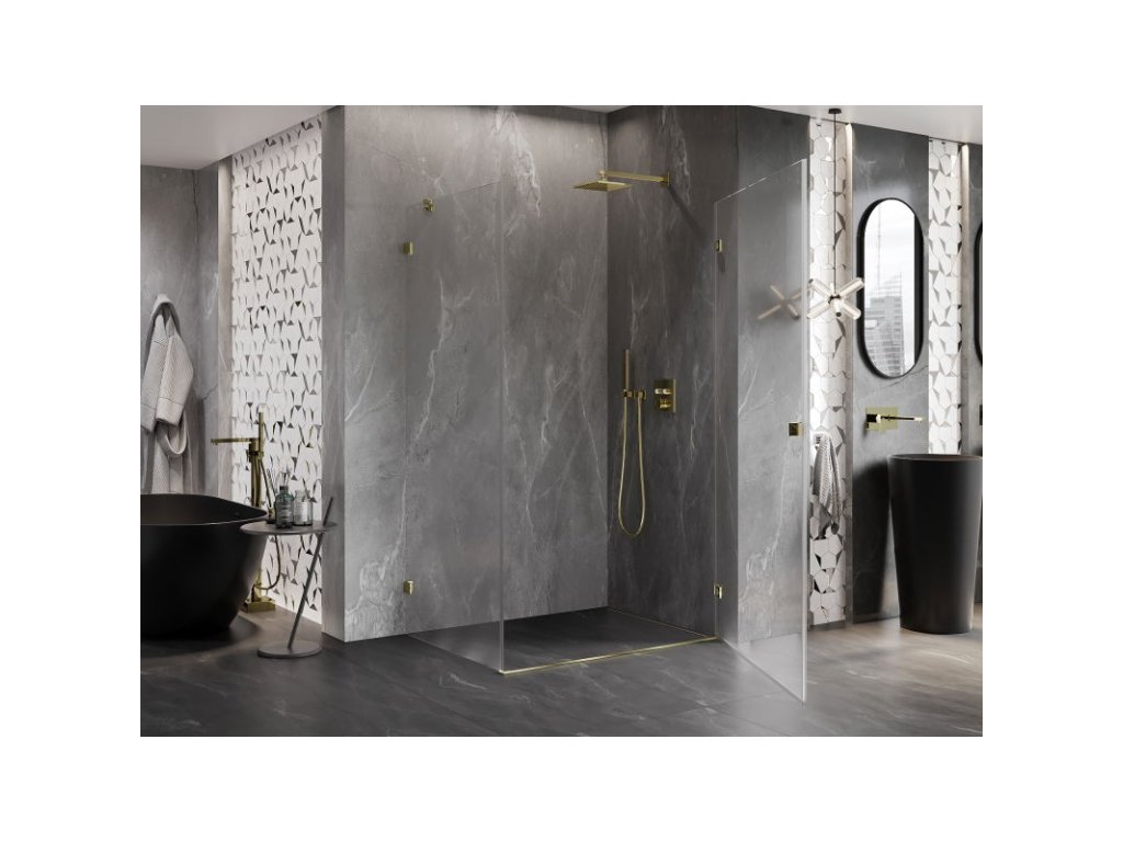 Mexen Lunar-B pravostranný výklopný sprchový kút 90 x 70 cm, transparentný, zlatý - 832-090-070-50-00-P