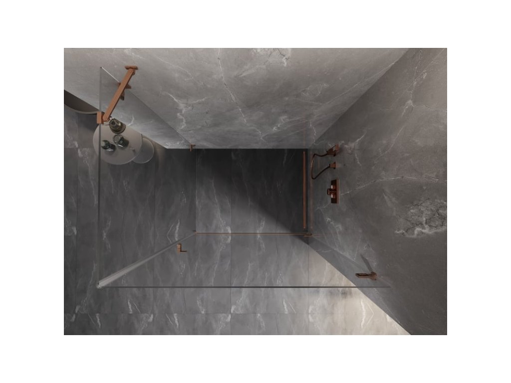 Mexen Lunar-B pravostranný výklopný sprchový kút 95 x 70 cm, transparentný, brúsená meď - 832-095-070-65-00-P