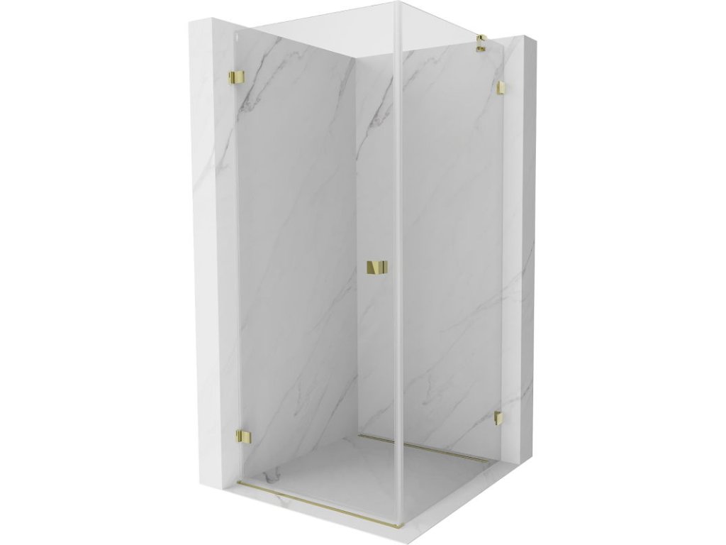 Mexen Lunar-B sklápací sprchový kút ľavý 70 x 70 cm, transparentný, zlatý - 832-070-070-50-00-L
