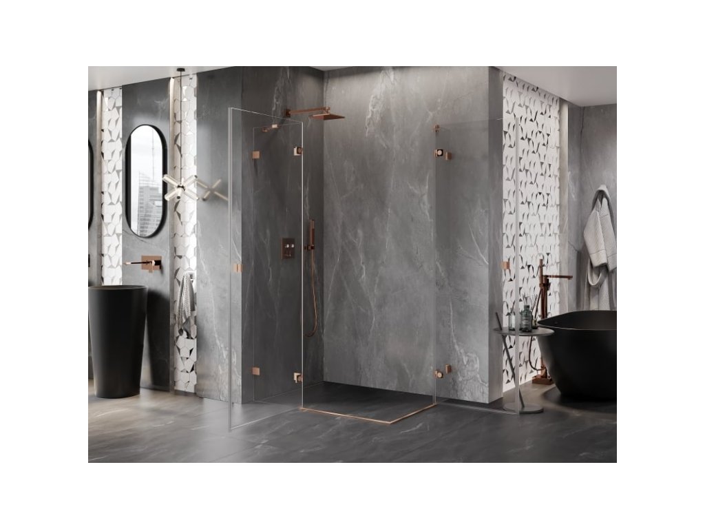 Mexen Lunar Duo sklápací sprchový kút 95 x 80 cm, transparentný, brúsená meď - 834-095L-080P-65-00