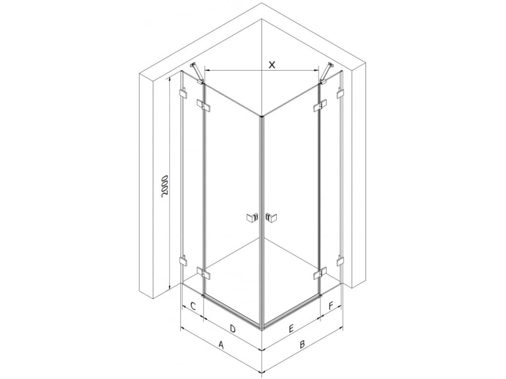 Mexen Lunar Duo výklopný sprchový kút 80 x 75 cm, priehľadný, pištoľový kov - 834-080L-075P-95-00