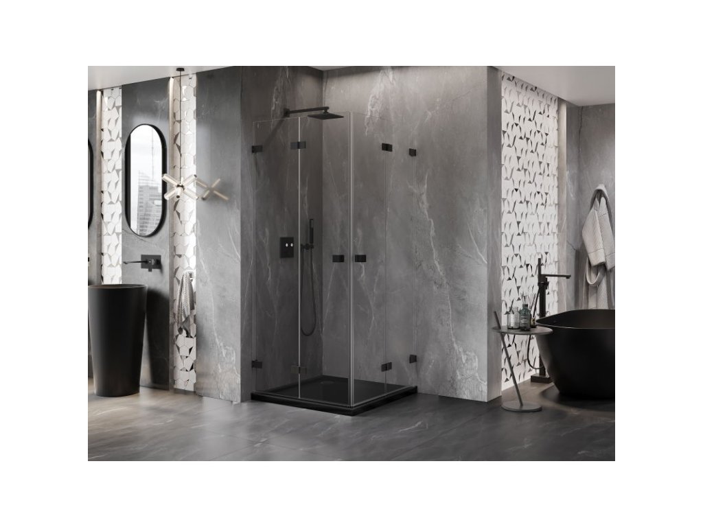 Mexen Lunar-F Duo skladací sprchový kút 80 x 80 cm, priehľadný, čierny - 836-080L-080P-70-00