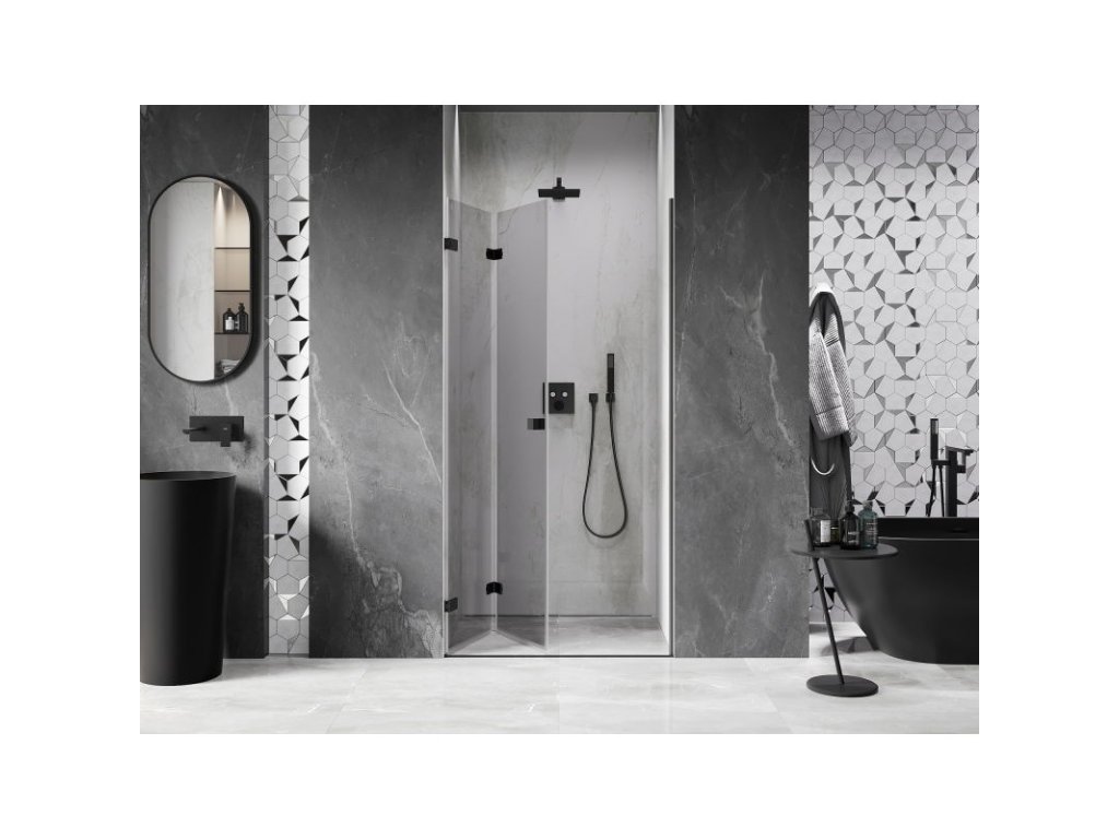 Mexen Lunar-F ľavé sklápacie sprchové dvere 60 cm, transparentné, čierne - 836-060-000-70-00-L