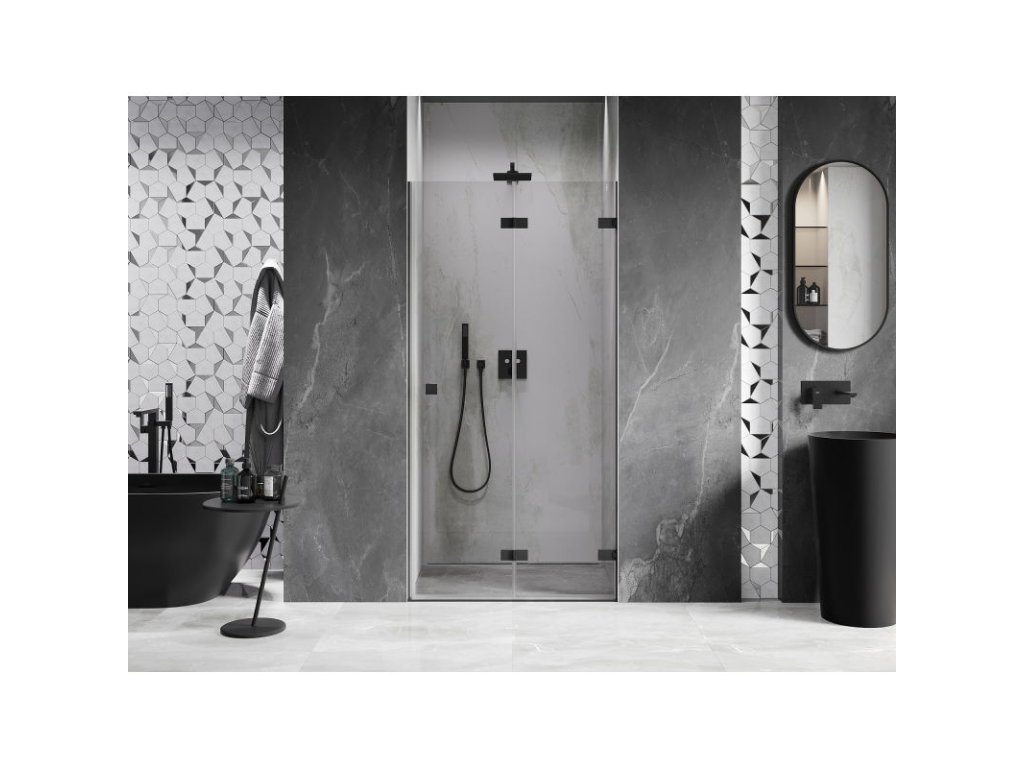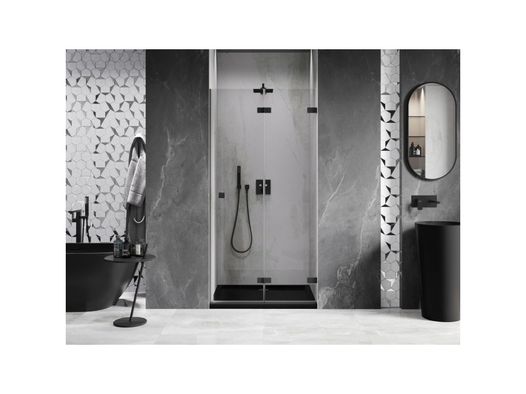 Mexen Lunar-F pravé sklápacie sprchové dvere 90 cm, transparentné, čierne - 836-090-000-70-00-P