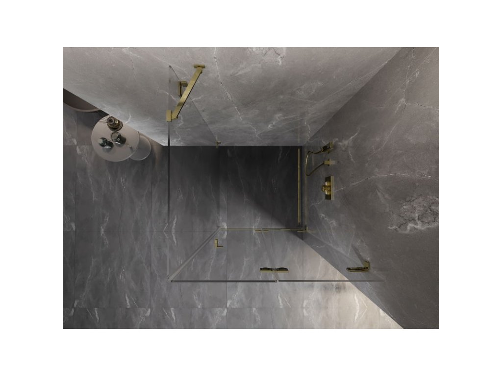 Špecifikácie výrobku: Rozmery: 70x70 cm (pravé dvere 70 cm, stena 70 cm) Výška: 200 cm Strana inštalácie: Pravá strana Vchod: Sklopné dvere Farba skla: priehľadná Povrchová úprava: Zlatá Profil: hliník Konzola: Nerezová oceľ Typ skla: tvrdené Hrúbka skla: 6 mm dvere, 8 mm stena Povrchová úprava pre ľahké čistenie Možnosť nastavenia šírky Dva systémy upevnenia: - S profilom na vyrovnanie nerovností steny - Bez profilu pre dokonale rovné steny Možnosť inštalácie na sprchovú vaničku alebo na dlaždice Mosadzné držiaky a závesy v jednej rovine s povrchom skla Magnetický pásik a elastomérové tesnenie na odtok vody Hliníkový prah s tesnením dveríDodatočné parametre