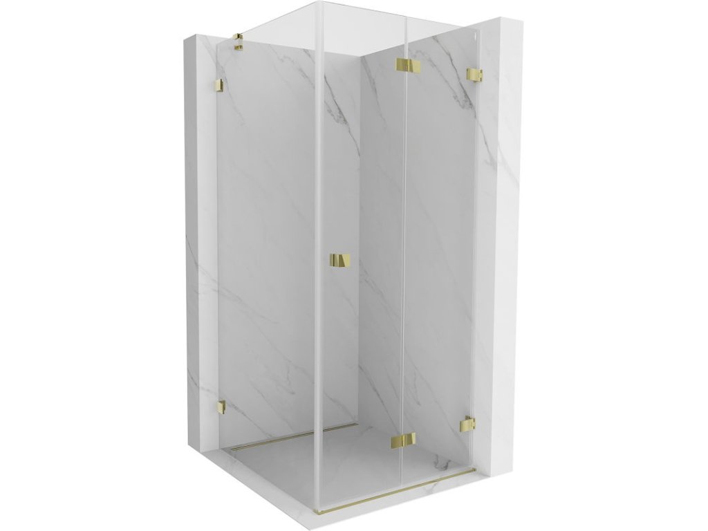 Mexen Lunar-F pravý sklápací sprchový kút 70 x 70 cm, priehľadný, zlatý - 836-070-070-50-00-P