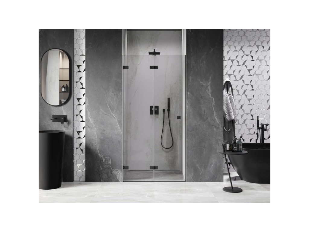 Mexen Lunar-F skladacie ľavé sprchové dvere 70 cm, priehľadné, čierne - 836-070-000-70-00-L