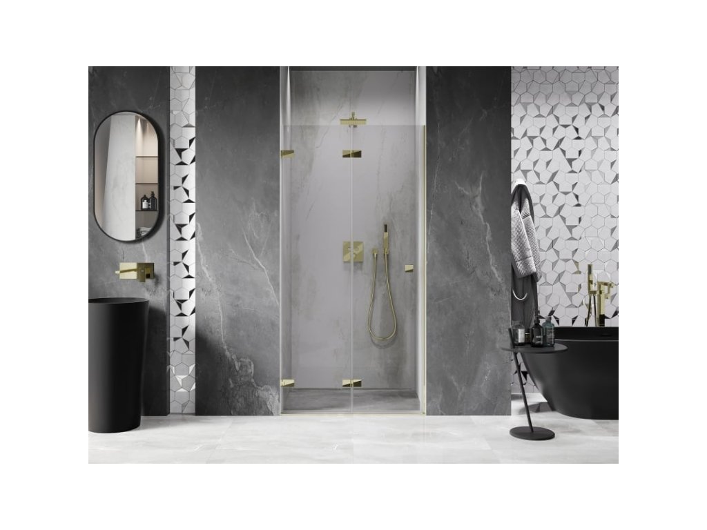 Mexen Lunar-F skladacie ľavé sprchové dvere 70 cm, transparentné, zlaté - 836-070-000-50-00-L