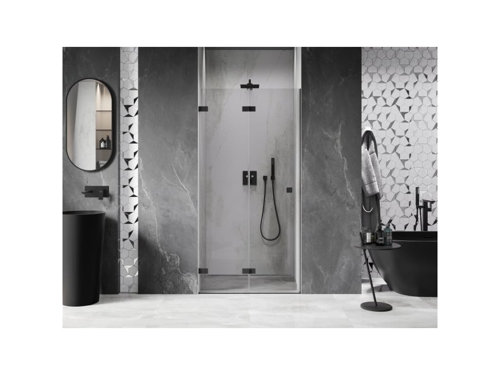 Mexen Lunar-F skladacie ľavé sprchové dvere 75 cm, priehľadné, čierne - 836-075-000-70-00-L