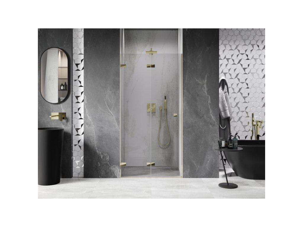 Mexen Lunar-F skladacie ľavé sprchové dvere 95 cm, transparentné, zlaté - 836-095-000-50-00-L