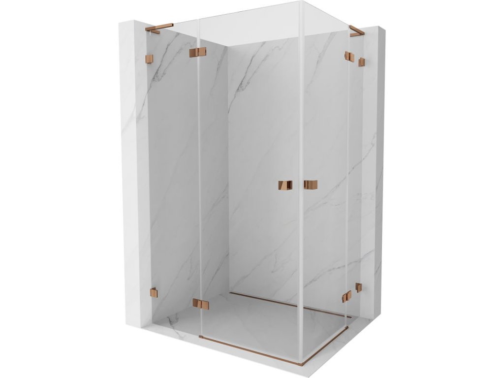 Mexen Lunar L Duo sklápací sprchový kút 90 x 75 cm, transparentný, ružové zlato - 834L-090L-075P-60-00