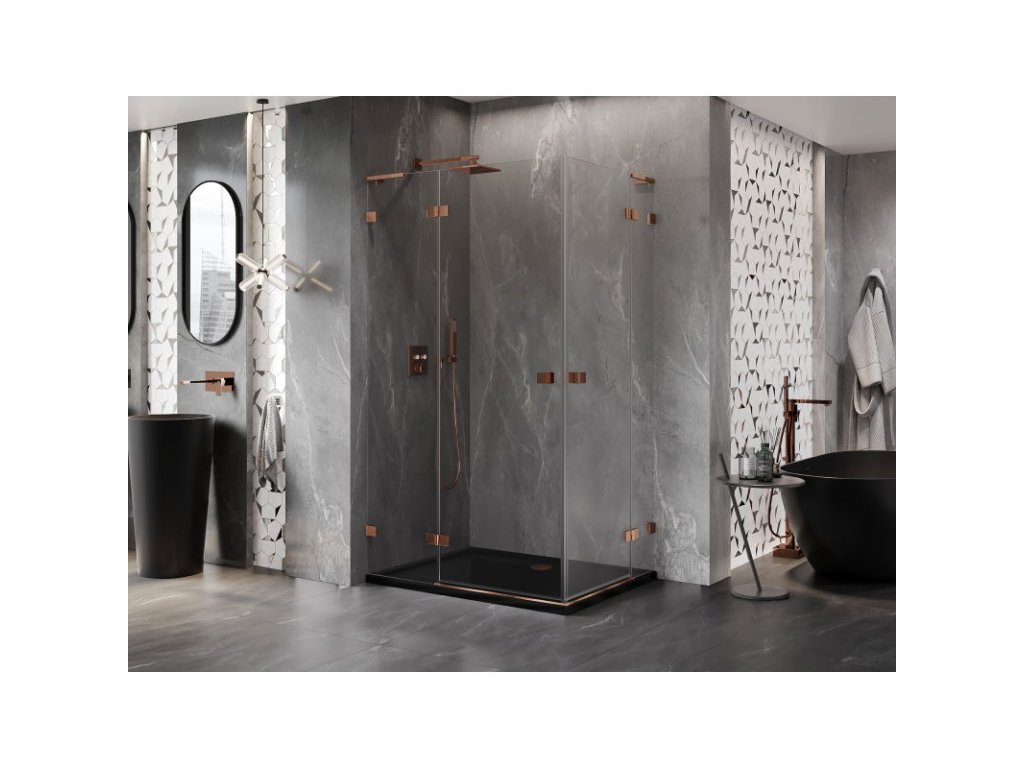 Mexen Lunar L Duo výklopný sprchový kút 105 x 75 cm, transparentný, ružové zlato - 834L-105L-075P-60-00