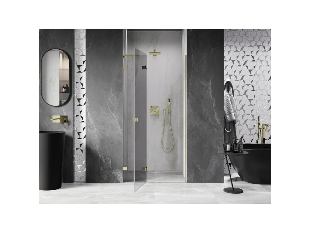 Mexen Lunar L Otočné ľavé sprchové dvere 115 cm, transparentné, zlaté - 834L-115-000-50-00-L