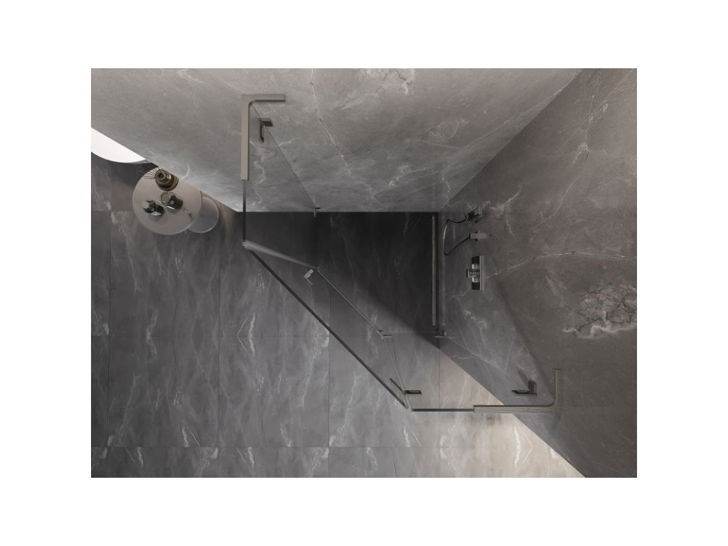 Mexen Lunar L päťuholníkový sprchový kút naklápací vpravo 100x100 cm, transparentný, brúsený nikel - 831L-100P-100L-97-00-P