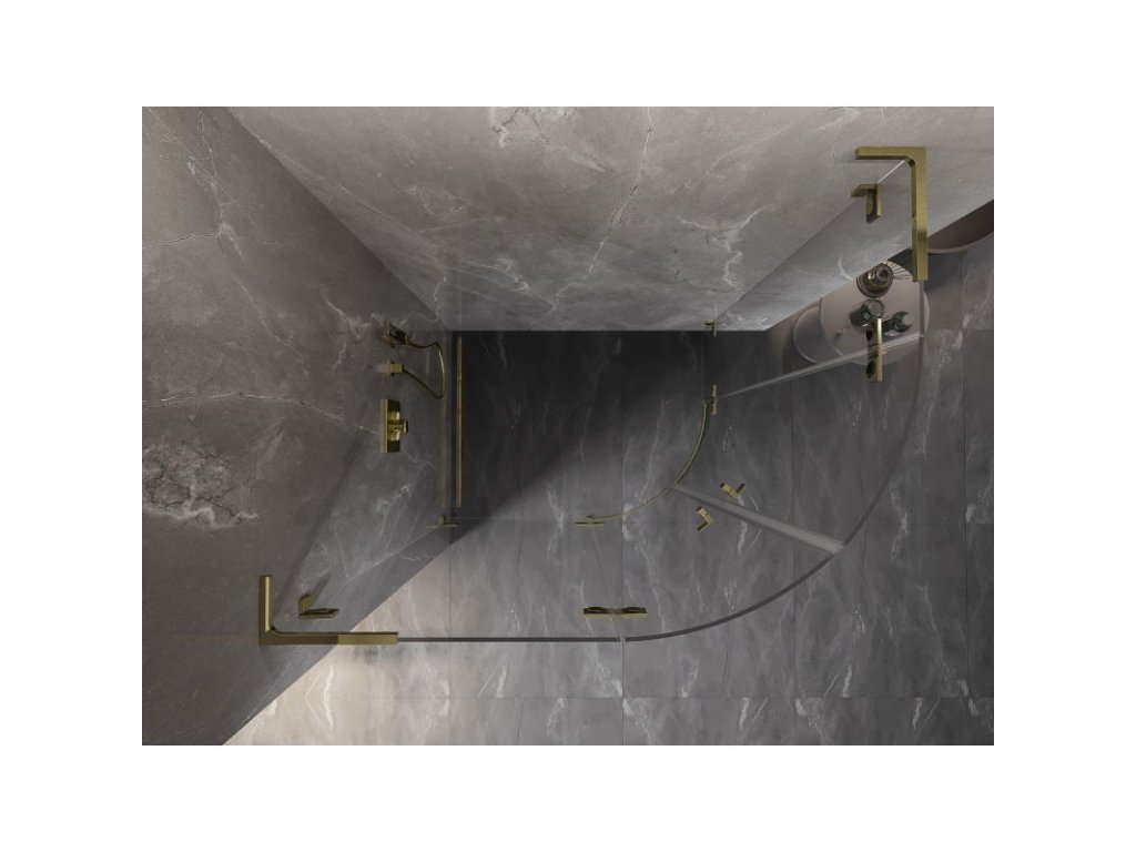 Mexen Lunar L polkruhový sprchový kút naklápací doľava 100 x 70 cm, transparentný, zlatý - 833L-100L-070P-50-00