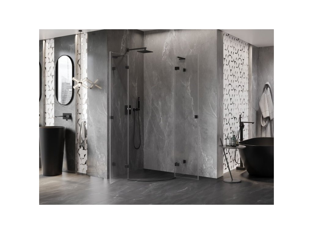 Mexen Lunar L polkruhový výklopný sprchový kút 70 x 70 cm, priehľadný, čierny - 833L-070L-070P-70-00