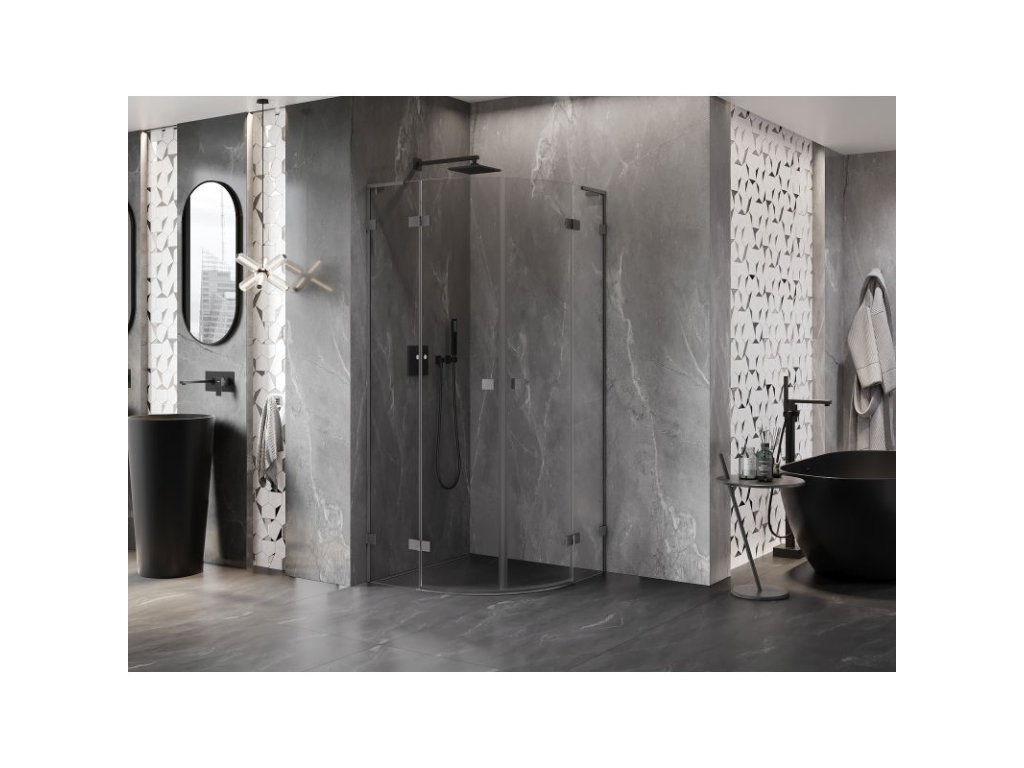 Mexen Lunar L polkruhový výklopný sprchový kút 70 x 70 cm, priehľadný, pištoľovo šedý kartáčovaný - 833L-070L-070P-66-00