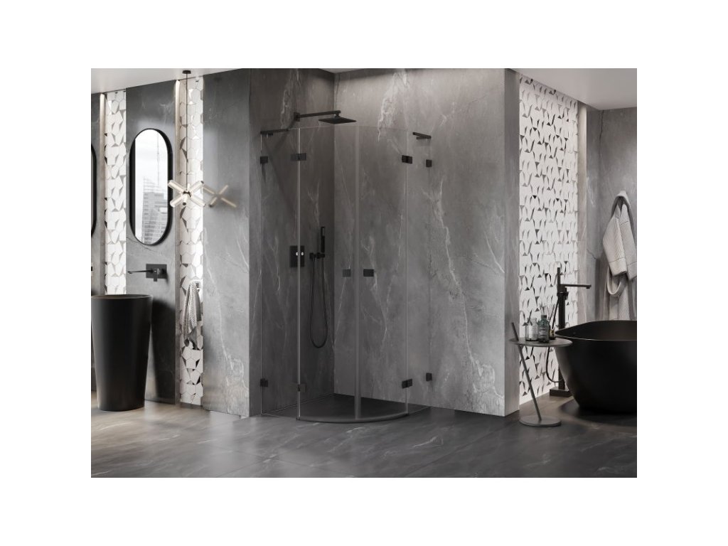 Mexen Lunar L polkruhový výklopný sprchový kút 80 x 80 cm, priehľadný, čierny - 833L-080L-080P-70-00