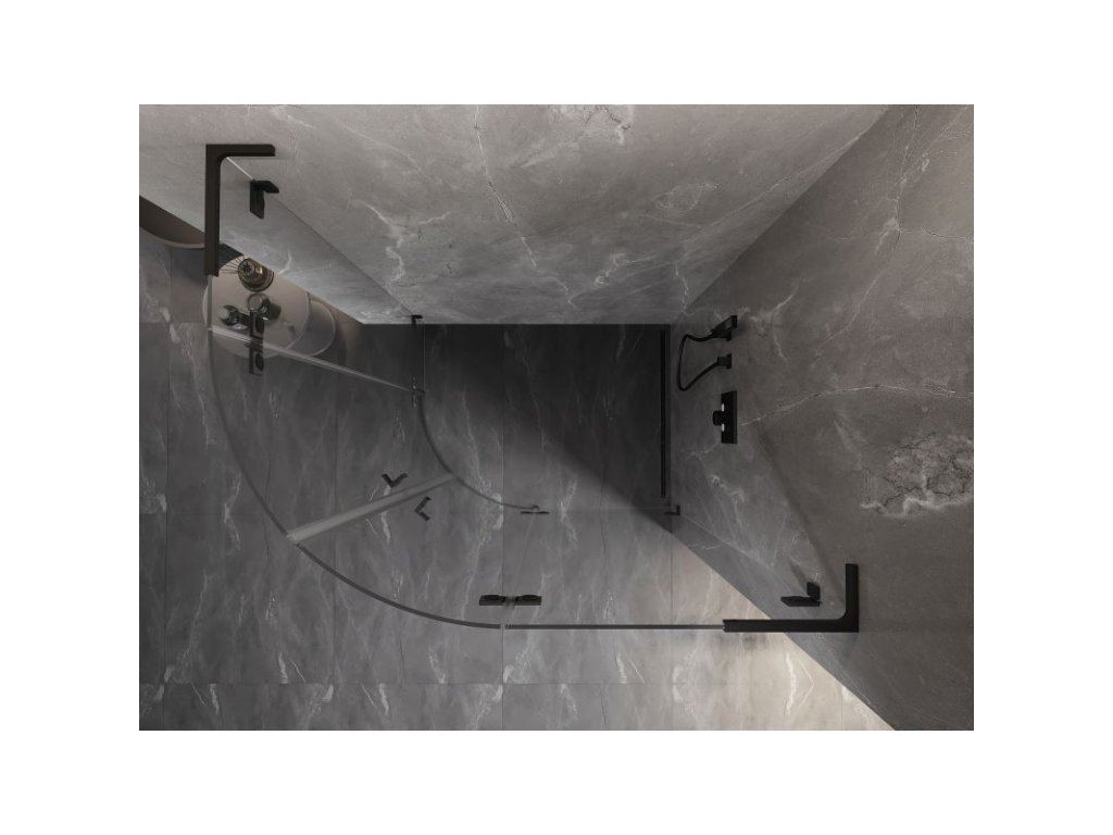 Mexen Lunar L pravý polkruhový sprchový kút 100 x 70 cm, transparentný, čierny - 833L-100P-070L-70-00