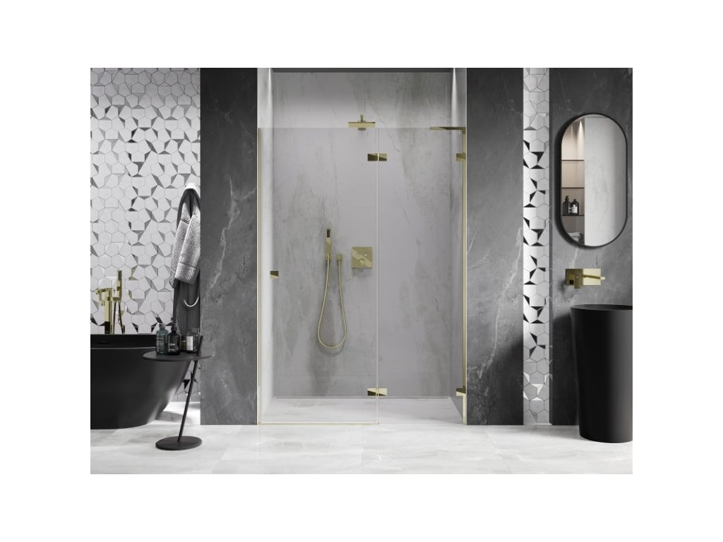 Mexen Lunar L sklápacie pravé sprchové dvere 135 cm, transparentné, zlaté - 834L-135-000-50-00-P