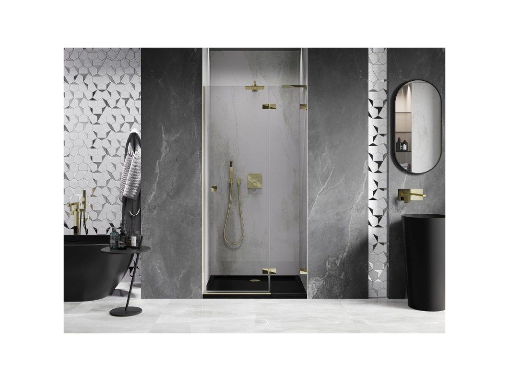 Mexen Lunar L sklápacie pravé sprchové dvere 70 cm, transparentné, zlaté - 834L-070-000-50-00-P