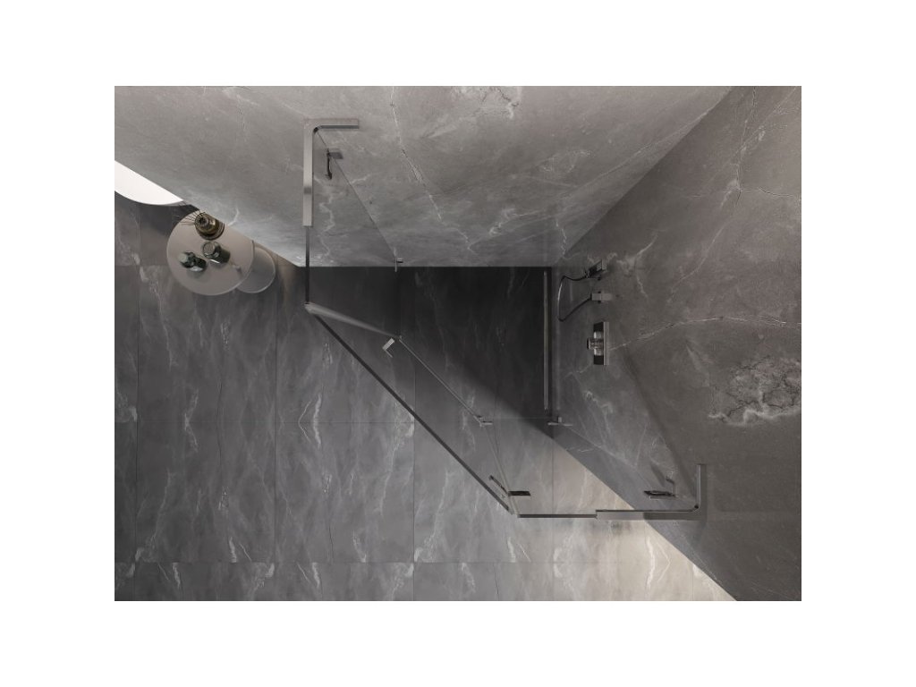 Mexen Lunar L sklopný päťuholníkový sprchový kút pravý 100 x 100 cm, priehľadný, chróm - 831L-100P-100L-01-00-P