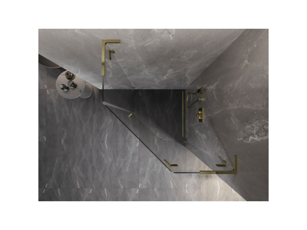 Mexen Lunar L sklopný päťuholníkový sprchový kút pravý 100 x 100 cm, transparentný, zlatý - 831L-100P-100L-50-00-P