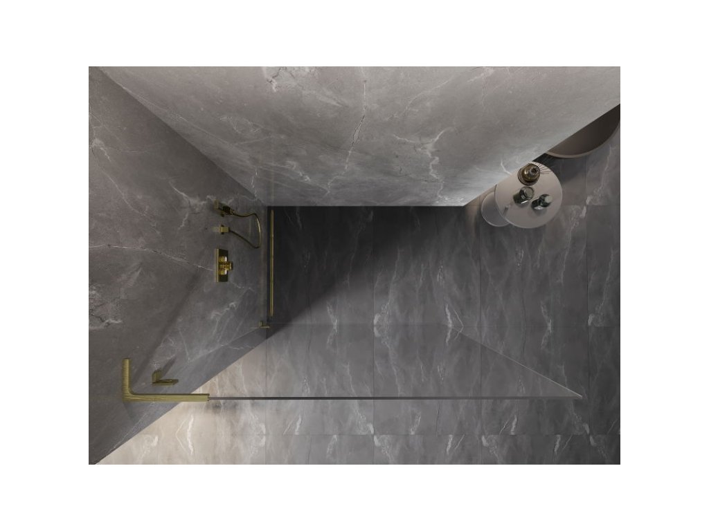 Mexen Lunar L sprchová stena ľavá 60 x 200 cm, priehľadná 8 mm, zlatý kartáč - 830L-060-000-55-00-L