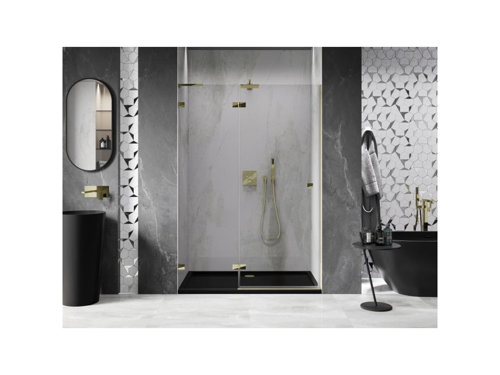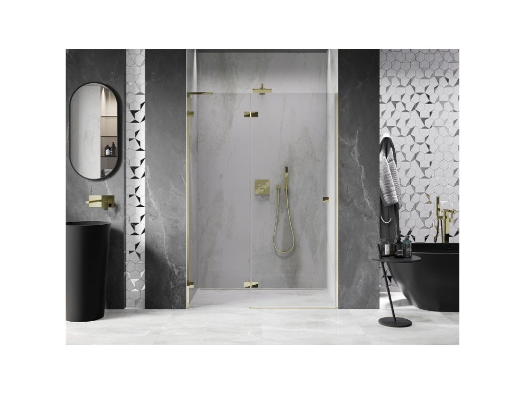 Mexen Lunar L výklopné sprchové dvere ľavé 130 cm, transparentné, zlaté - 834L-130-000-50-00-L