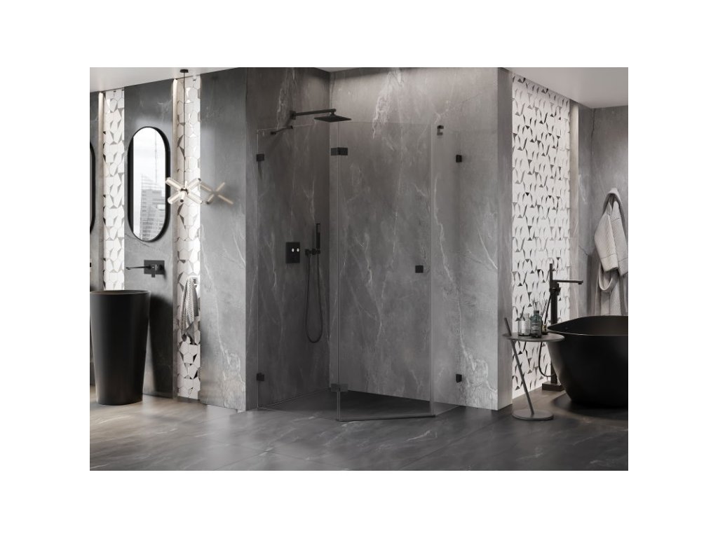 Mexen Lunar päťuholníkový sprchový kút naklápací doľava 100 x 80 cm, transparentný, čierny - 831-100L-080P-70-00-L