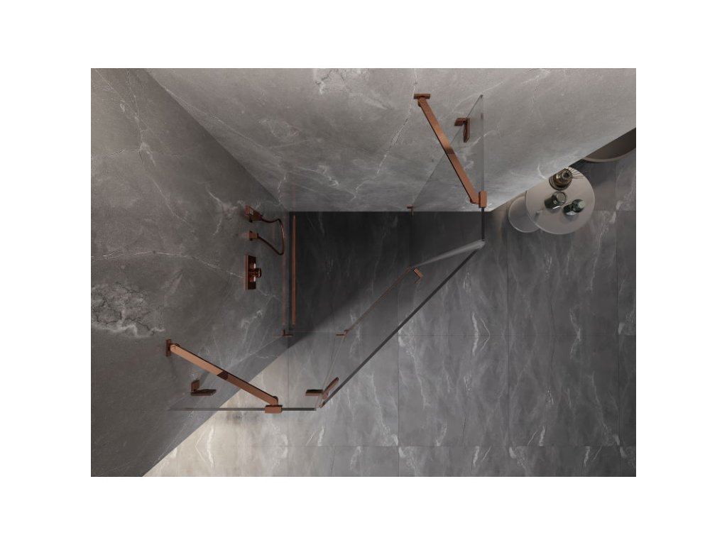 Mexen Lunar päťuholníkový sprchový kút naklápací doľava 80 x 80 cm, transparentný, ružové zlato - 831-080L-080P-60-00-L