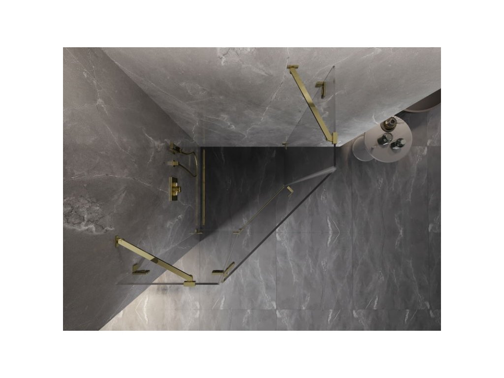 Mexen Lunar päťuholníkový sprchový kút naklápací doľava 80 x 80 cm, transparentný, zlatý - 831-080L-080P-50-00-L