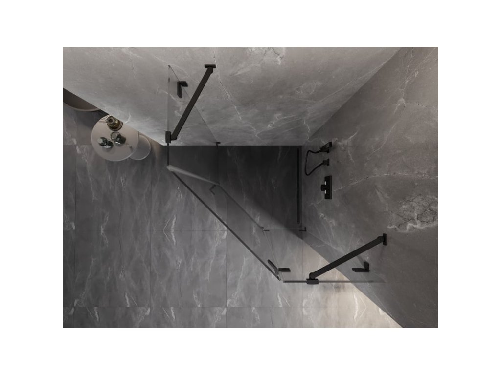 Mexen Lunar päťuholníkový sprchový kút s pravým sklonom 100 x 100 cm, priehľadný, čierny - 831-100P-100L-70-00-P