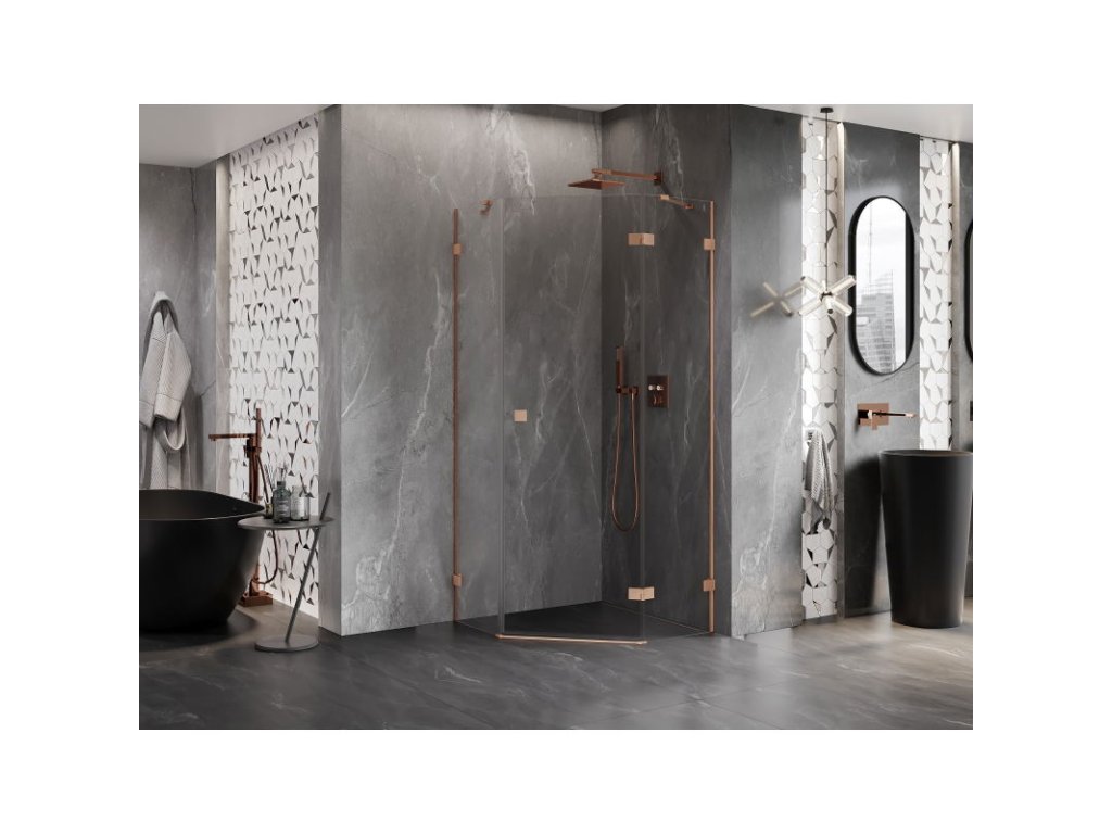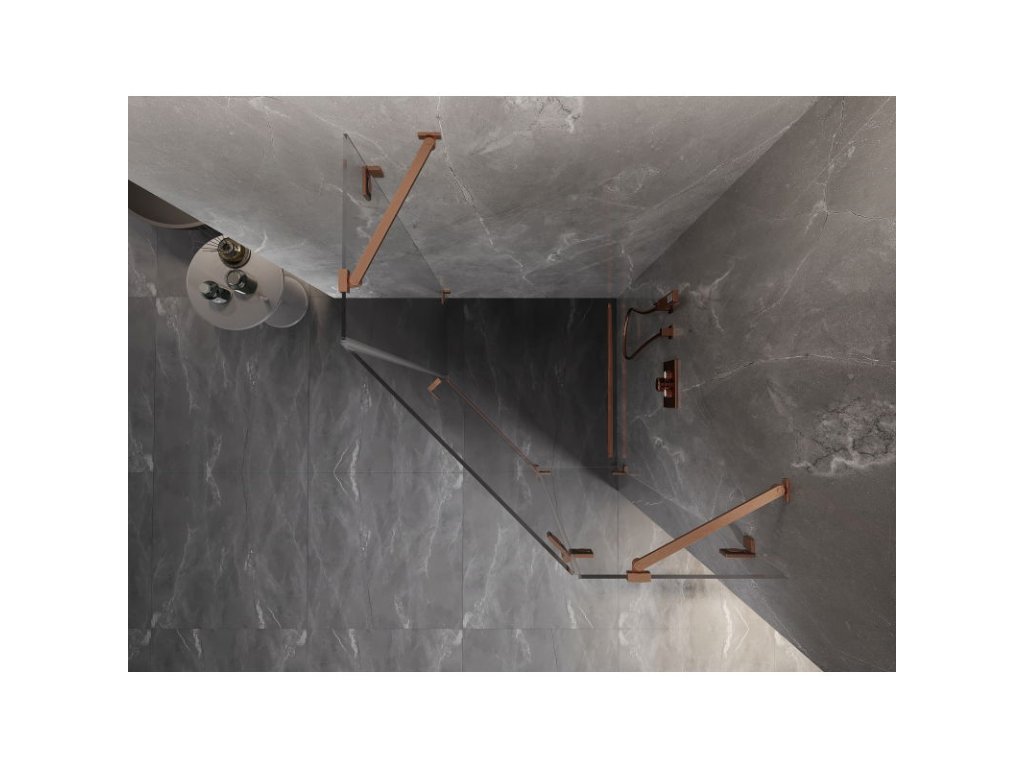 Mexen Lunar päťuholníkový sprchový kút s pravým sklonom 100 x 100 cm, transparentný, brúsená meď - 831-100P-100L-65-00-P