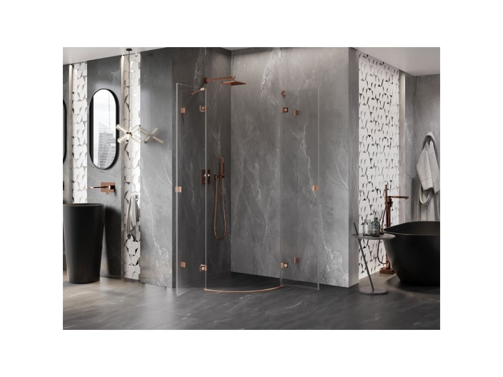 Mexen Lunar polkruhová výklopná sprchová kabína 70 x 70 cm, transparentná, brúsená meď - 833-070L-070P-65-00