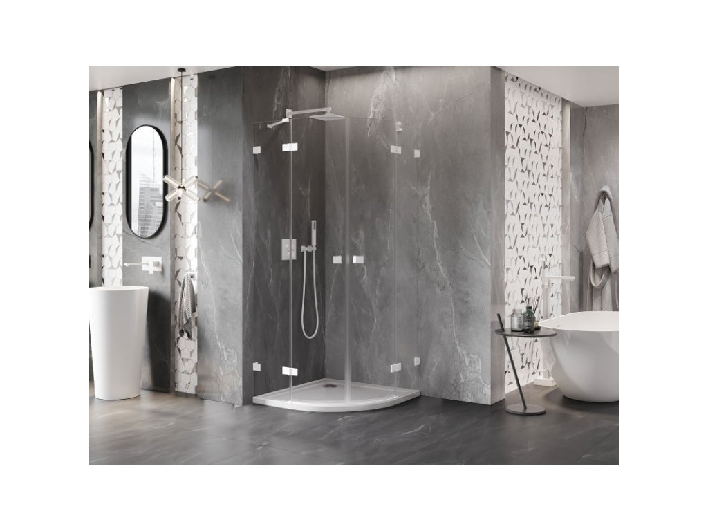 Mexen Lunar polkruhový výklopný sprchový kút 90 x 90 cm, priehľadný, biely - 833-090L-090P-20-00
