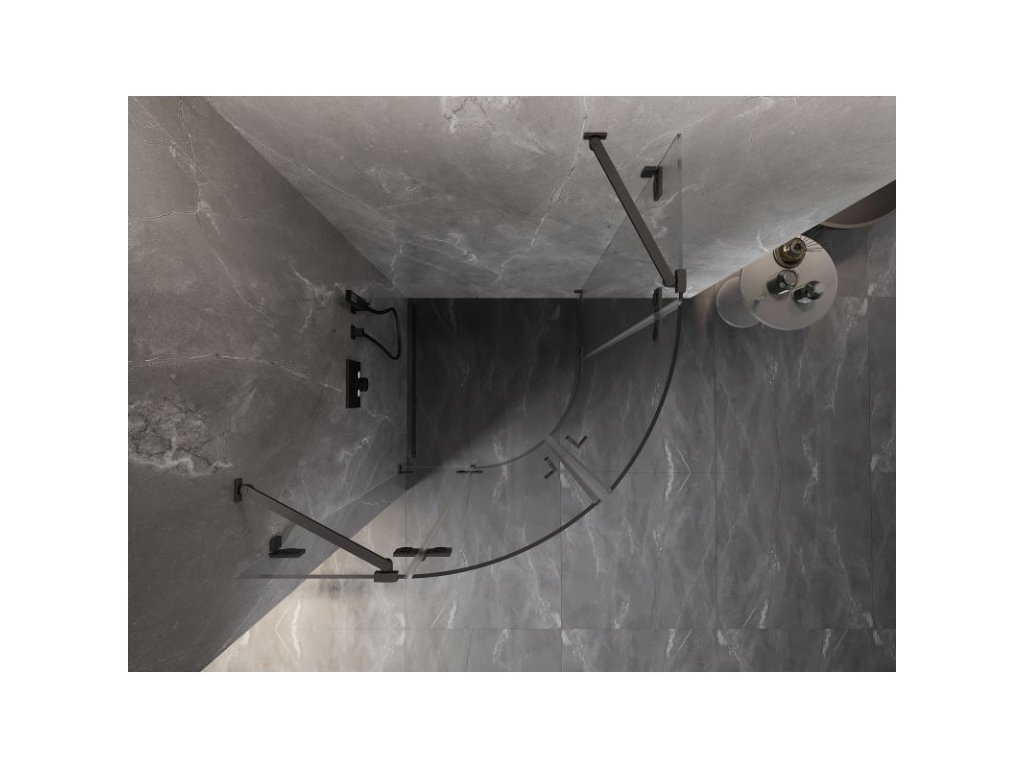 Mexen Lunar polkruhový výklopný sprchový kút 90 x 90 cm, priehľadný, pištoľovo šedý kartáčovaný - 833-090L-090P-66-00