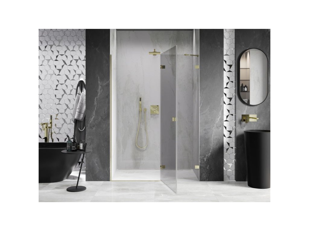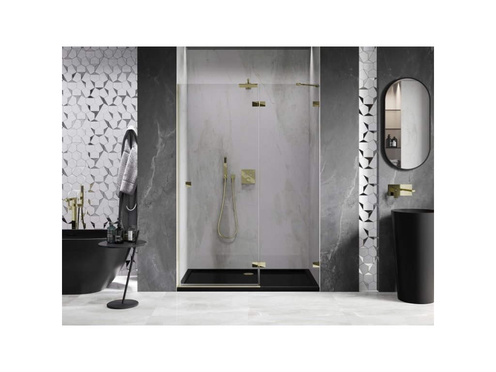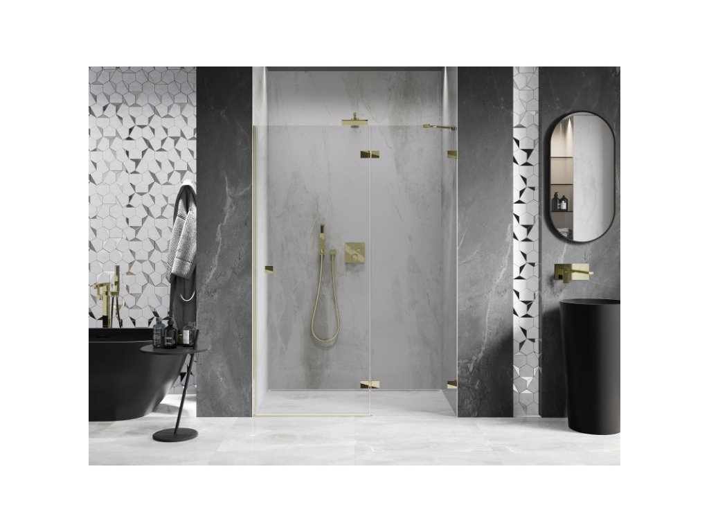 Mexen Lunar pravé otočné sprchové dvere 130 cm, transparentné, zlaté - 834-130-000-50-00-P
