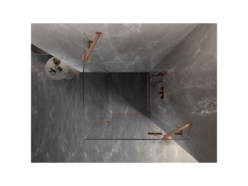 Mexen Lunar pravostranný výklopný sprchový kút 70 x 70 cm, transparentný, brúsená meď - 834-070-070-65-00-P