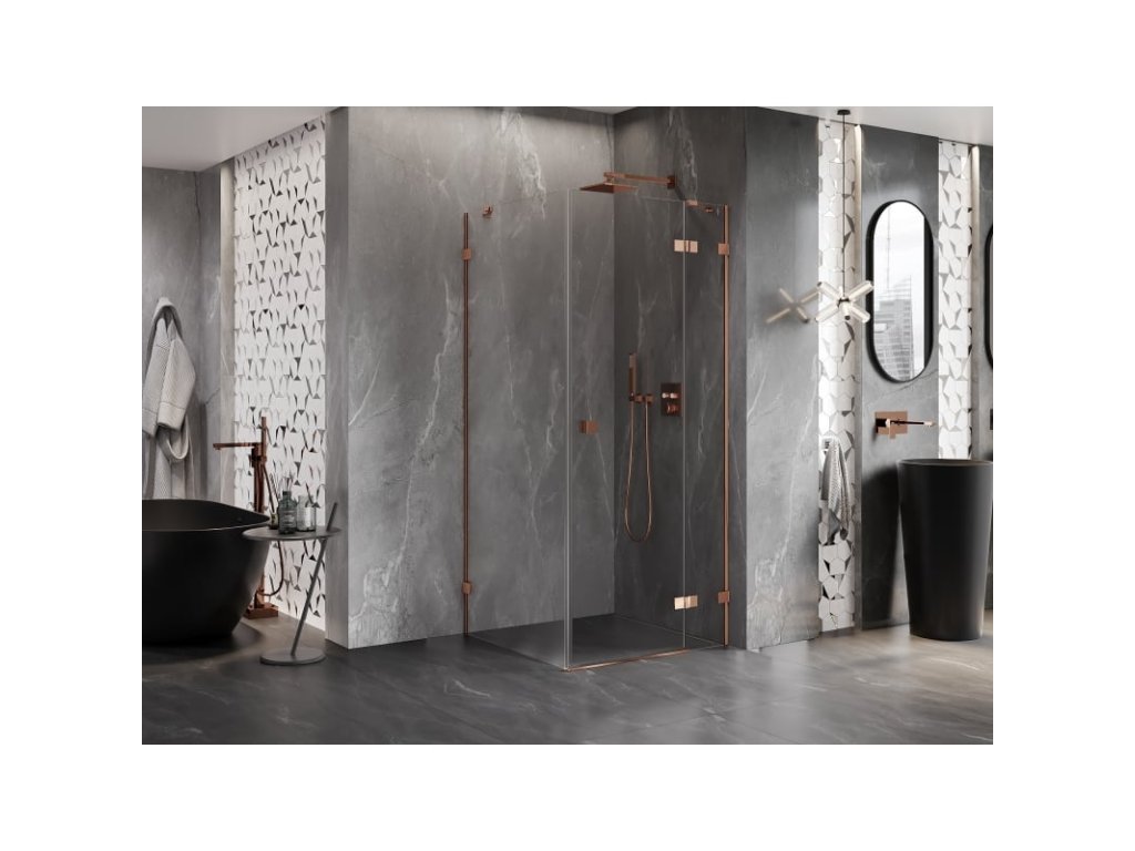 Mexen Lunar pravostranný výklopný sprchový kút 70 x 70 cm, transparentný, ružové zlato - 834-070-070-60-00-P
