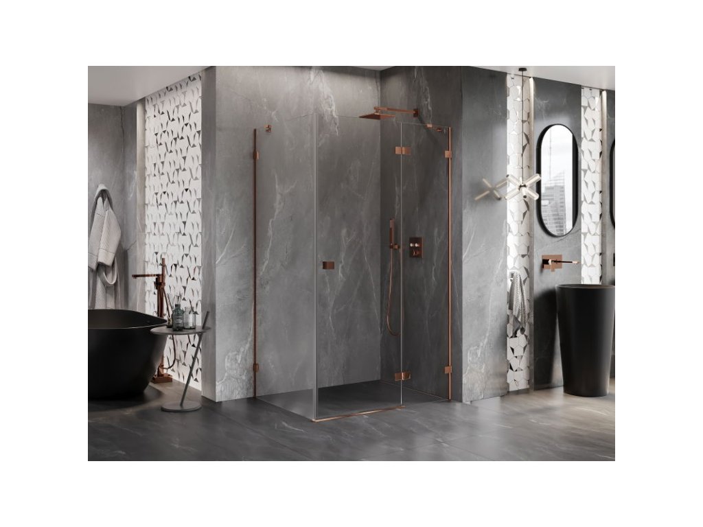 Mexen Lunar pravostranný výklopný sprchový kút 95 x 70 cm, transparentný, ružové zlato - 834-095-070-60-00-P