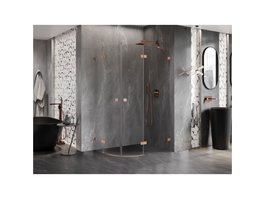 Mexen Lunar pravý polkruhový sprchový kút 100 x 90 cm, transparentný, brúsená meď - 833-100P-090L-65-00