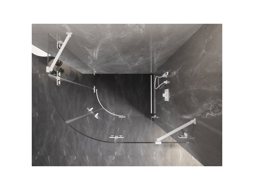 Mexen Lunar pravý polkruhový sprchový kút 90 x 80 cm, transparentný, biely - 833-090P-080L-20-00